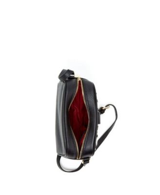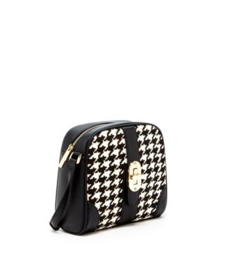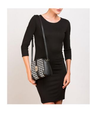 Houndstooth Small Crossbody Bag Black and White Pebble Leather Purse with Zipper Closure