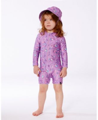 Baby Girl Printed Beach Sun Hat Old Mauve And Multicolored Butterflies - Infant