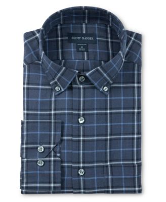 Men's European Linen Navy Plaid