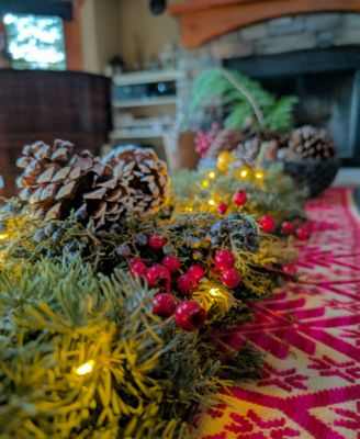 Fresh Noble Fir Berried Juniper Centerpiece with Faux Berries and Faux Apples and Warm Lights