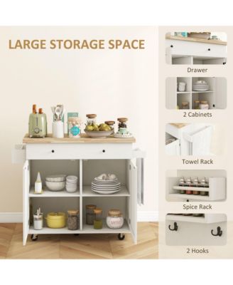 Rolling Kitchen Island on Wheels with Drawer, Spice Rack,