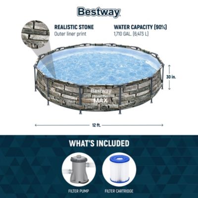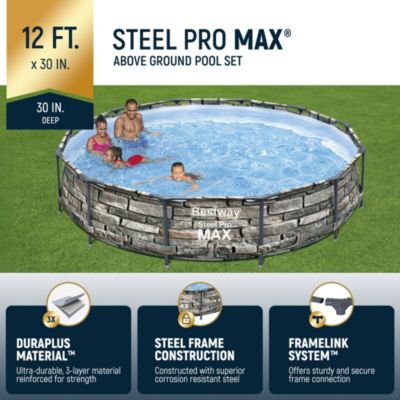 56817E 12' x 30" Steel Pro Max Round Above Ground Swimming Pool w/ Pump