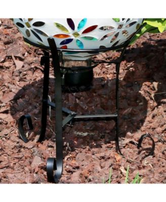 Outdoor Bird Bath Water Fountain with Metal Crosshatch Design - 28.5-Inch - Includes LED Lights