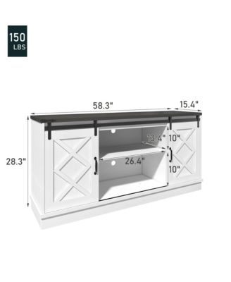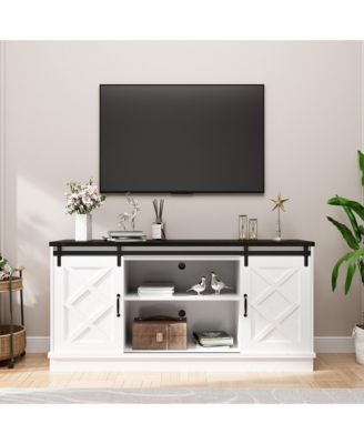 Solid Wood TV Stand with 4 Sliding Tempered Glass Doors,Media Console, Entertainment Center