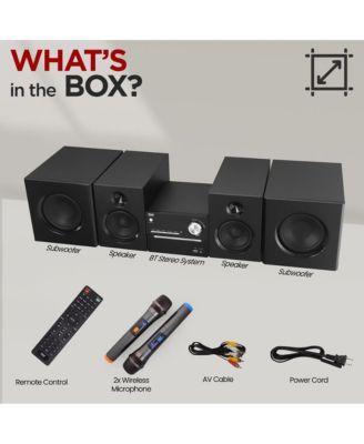 3-Piece Wireless BT Streaming Stereo System – MP3, USB, FM Radio, Bass Reflex Speaker, Remote & 2 Wireless Microphones (Black)