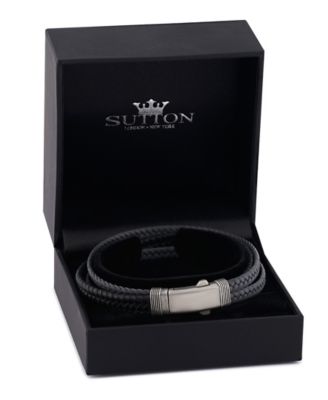 Grey Black Leather Stainless Steel Bracelet