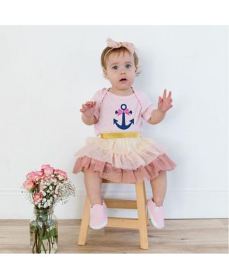 Baby Girls Anchor Bow Short Sleeve Bodysuit