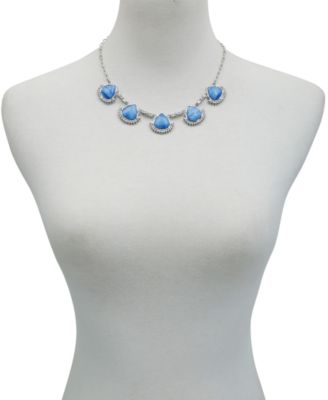 Silver-Tone Blue and Clear Glass Stone Statement Necklace, 18" + 3" Extender