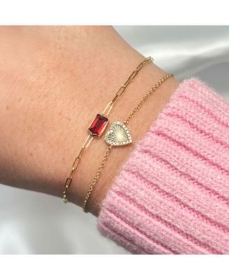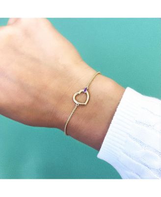 Baguette Amethyst Open Heart Bracelet 14K Gold