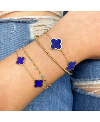 Blue Sapphire Single Clover Bracelet 14K Gold