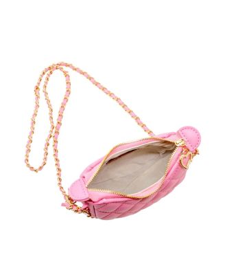 Girls Tiny Quilted Chain Wrapped Hobo Bag, Pink