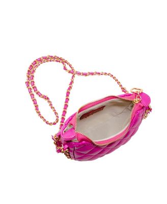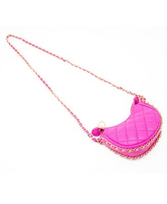 Girls Tiny Quilted Chain Wrapped Hobo Bag, Hot Pink