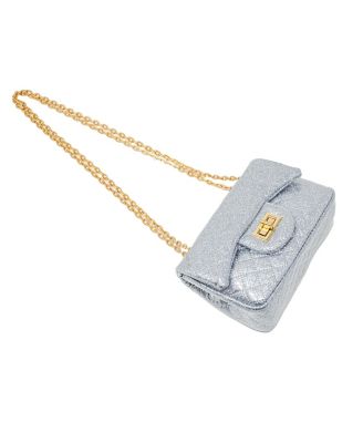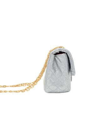 Girl's Silver Classic Quilted Sparkle Mini Handbag
