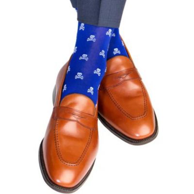 Men's Rodger Skull and Cross Bones Mercerized Cotton Mid-Calf Socks
