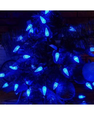 Set of 50 Blue LED Mini Christmas Lights 4" Spacing - White Wire