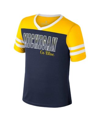 Big Girls Navy Michigan Wolverines Gridiron Jersey V-Neck T-Shirt