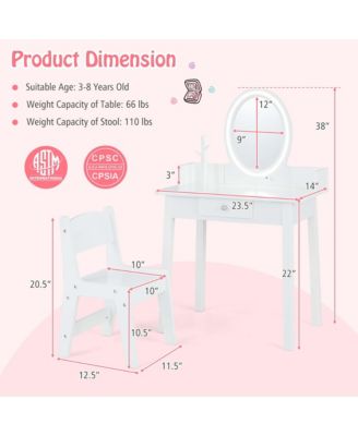 Kids Vanity Set with Lighted Mirror-White