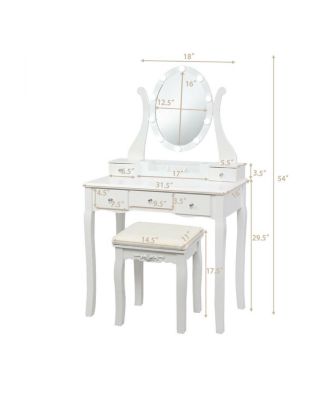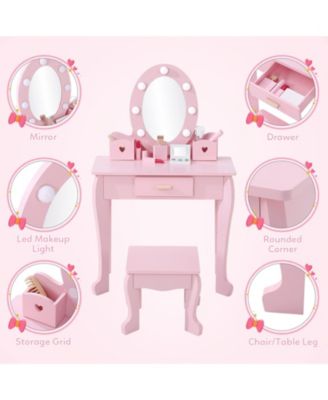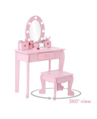 Kid Vanity Table Stool Set with Oval Rotatable Mirror