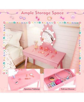 Kids Vanity Set with Light-Up Mirror, Chair, and Princess Makeup Desk
