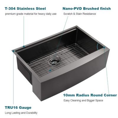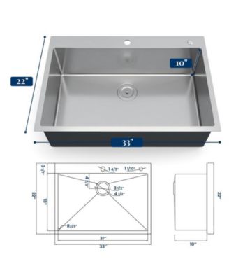 Streamdale Matte Stainless Steel Farmhouse Sink, 33 x 22 in.