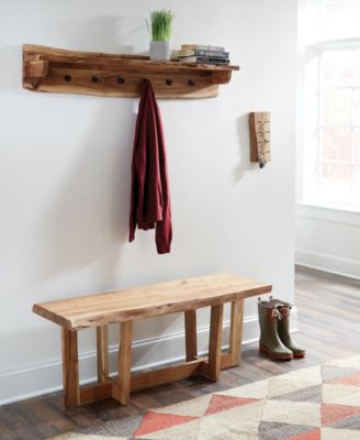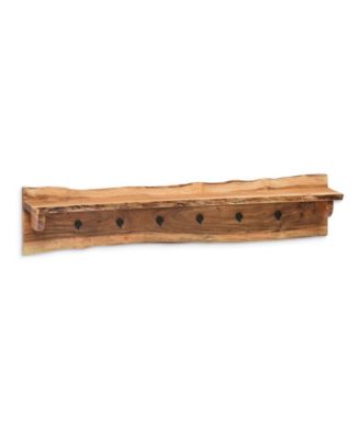 Alpine Natural Live Edge Wood 48" Coat Hooks With Shelf