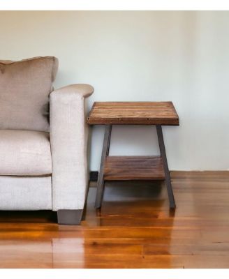Contemporary Solid Wood End Table with Shelf
