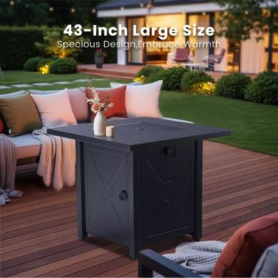 43" 2-in-1 Fire Pit Table with Adjustable Flame, 50,000 BTU Smokeless Windproof Propane Heater, Durable Metal Frame, CSA Certified for Patio
