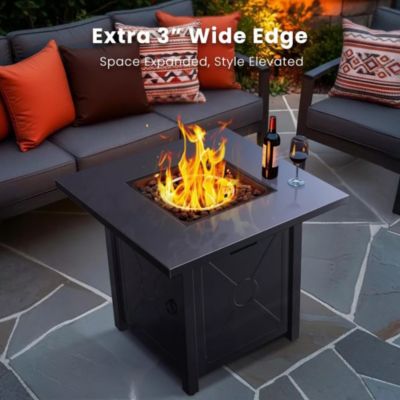 28" Propane Fire Pit Table, 40,000 BTU Outdoor Gas Fire Table with Lid, Rain Cover, and 3 lbs Lava Rocks for Patio, Backyard, or Garden