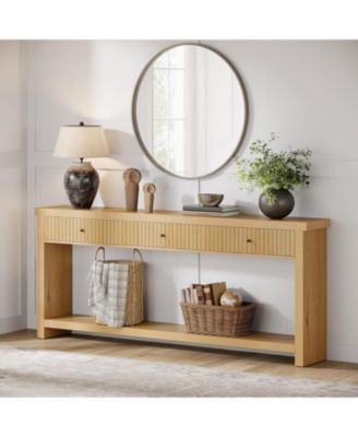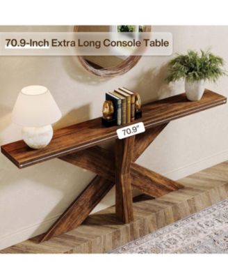 Farmhouse Console Entryway Table: 70.9 Inches All Wood Console Table for Entrance, 2 Tiers Narrow Long Behind Couch Sofa Table