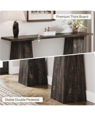 Rustic Console Table Wood Entryway Table for Living Room, 63 inch Narrow Sofa Table Farmhouse Vintage Couch Table Retro Hallway Accent Tables with Double Pedestal Base for Entrance