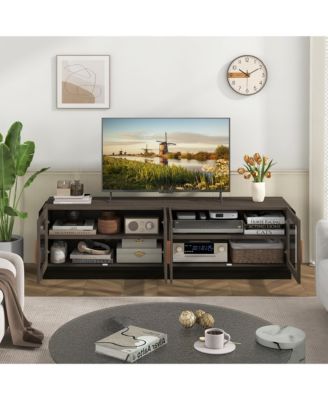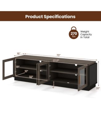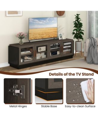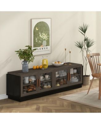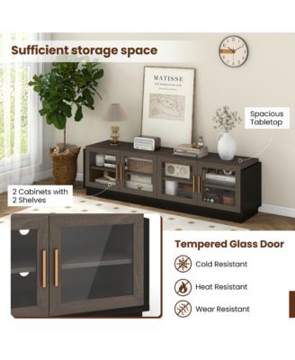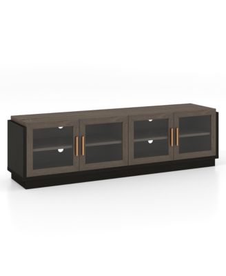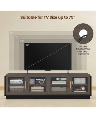 Large TV Stand for TVs up to 75'' Console Table w/ 4 Tempered Glass Doors