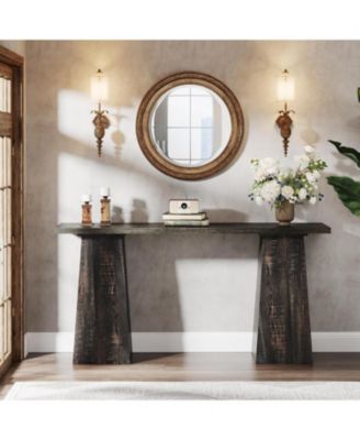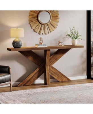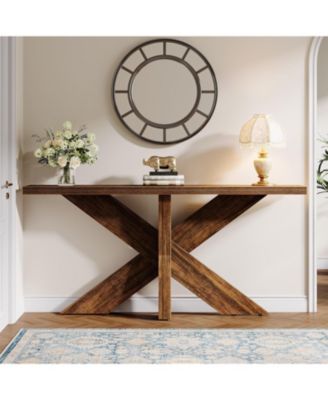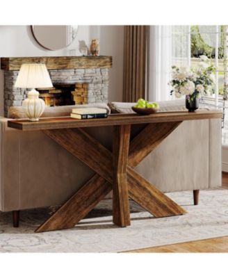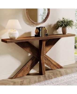 55 Inch Console Table, Farmhouse Sofa Table Wood Entryway Table, Behind The Couch Table Foyer Table, Rustic Brown