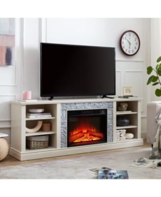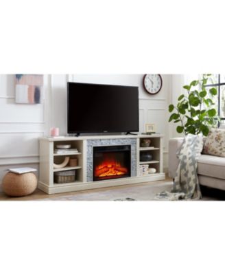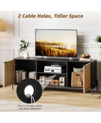 Rattan TV Stand for 65 Inch TV, White Entertainment Center Modern TV Console Table
