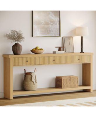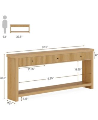 Wood Console Table Long Sofa Table with 3 Drawers, 70.9 inch Entryway Table Oak Hallway Table with Open Storage Shelves Wooden Couch Table Foyer Tables for Living Room Hall Entrance, Brown, Black Friday Deals 2024