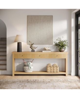 63-Inch Entryway Console Table – Long Sofa Table with Storage Drawers and Open Bottom Shelf