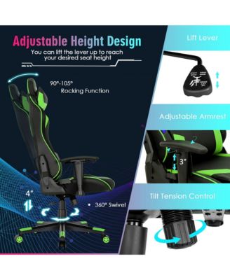 Adjustable High Back Gaming Chair Office Recliner w/ Footrest, Pillow