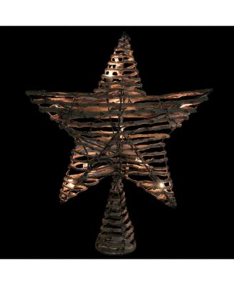 11.5" Natural Brown Rattan Star Christmas Tree Topper - Clear Lights