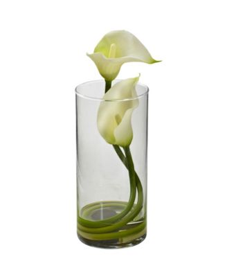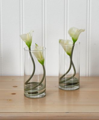 18" Mini Calla Lily Artificial Arrangement in Cylinder Glass Vase