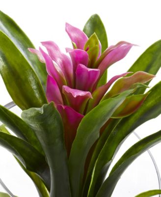 Pink Orchid & Bromeliad Artificial Arrangement in Glossy Black Cylinder Vase