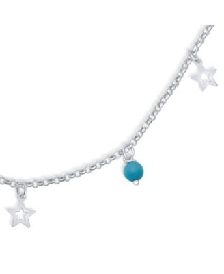 Sterling Silver Synthetic Blue Inlay Opal Turtle Anklet