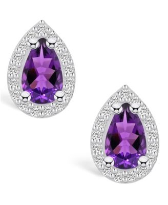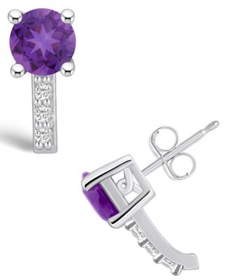 Amethyst (1-1/2 ct. t.w.) and Diamond (1/8 ct. t.w.) Stud Earrings in 14K White Gold