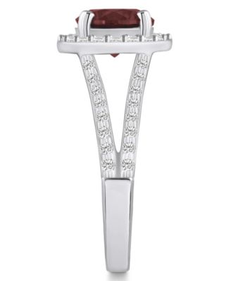 Garnet (2-1/2 ct. t.w.) and Diamond (1/2 ct. t.w.) Halo Ring in 14K White Gold