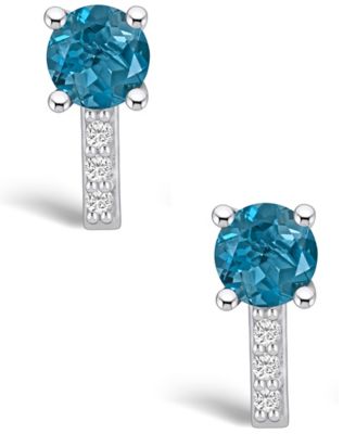 London Topaz (2-1/3 ct. t.w.) and Diamond (1/8 ct. t.w.) Stud Earrings in 14K White Gold