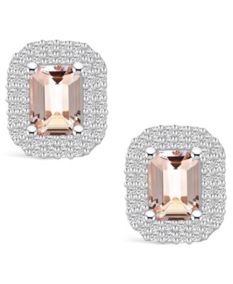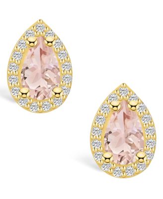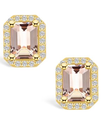 Morganite (1-3/8 ct. t.w.) and Diamond (1/3 ct. t.w.) Halo Stud Earrings in 14K Yellow Gold