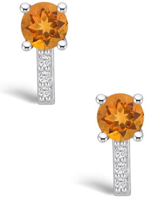 Citrine (1-1/2 ct. t.w.) and Diamond (1/8 ct. t.w.) Stud Earrings in 14K White Gold