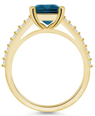Blue Topaz (4-1/4 ct. t.w.) and Diamond (1/4 ct. t.w.) Ring in 14K White Gold