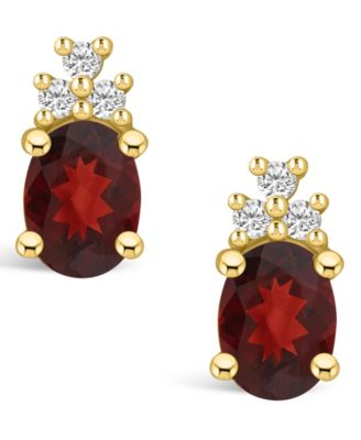Garnet (3 ct. t.w.) and Diamond (1/5 ct. t.w.) Stud Earrings in 14K Yellow Gold