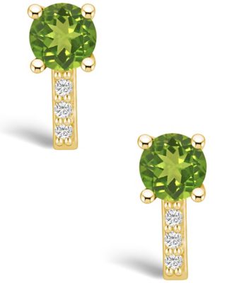 Peridot (1-7/8 ct. t.w.) and Diamond (1/8 ct. t.w.) Stud Earrings in 14K Yellow Gold