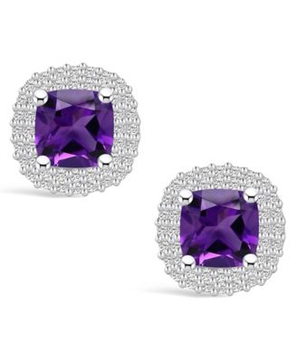 Amethyst (1-3/4 ct. t.w.) and Diamond (3/8 ct. t.w.) Halo Stud Earrings in 14K White Gold