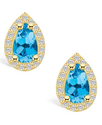 Topaz (2-1/10 ct. t.w.) and Diamond (1/3 ct. t.w.) Halo Stud Earrings in 14K Yellow Gold